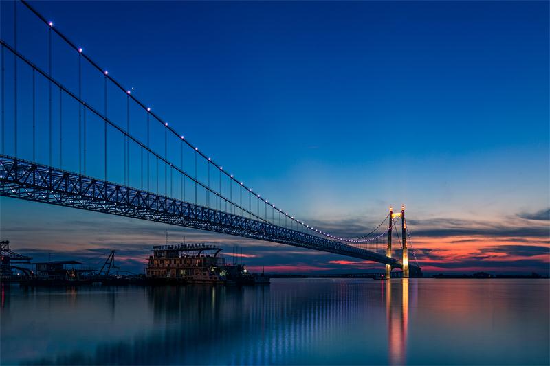 大岳高速洞庭湖大橋,懸索橋,主跨1480米,是世界第二大、國內(nèi)第一大“鋼桁梁懸索橋”,獲湖南省建設(shè)工程“芙蓉獎(jiǎng)”。