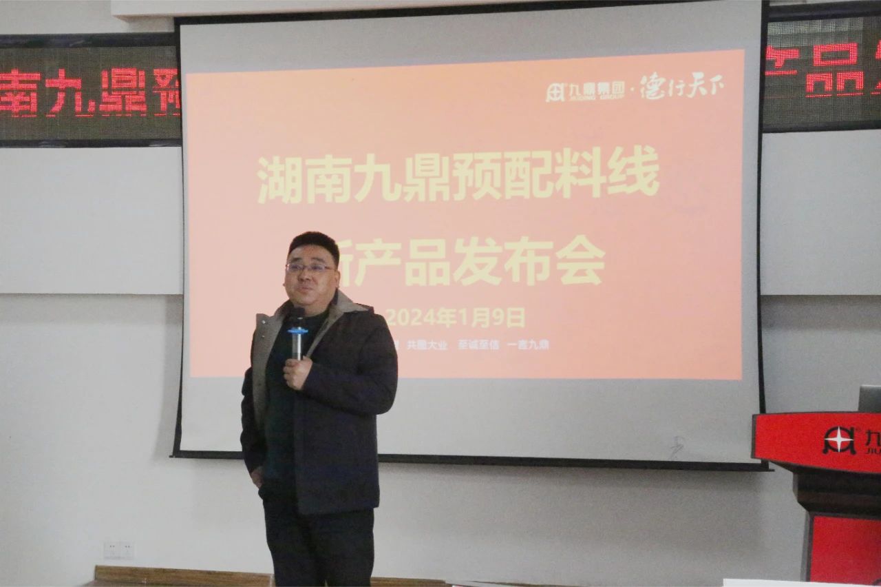 2024年1月9日清晨,岳陽(yáng)新港區(qū)九鼎研究院三樓會(huì)議室熱鬧非凡,一場(chǎng)振奮人心的盛會(huì)拉開(kāi)了帷幕。預(yù)配料線年會(huì)及新產(chǎn)品發(fā)布會(huì)聚集了各營(yíng)銷(xiāo)公司的精英,座無(wú)虛席,見(jiàn)證了預(yù)混料新產(chǎn)品的盛大亮相!