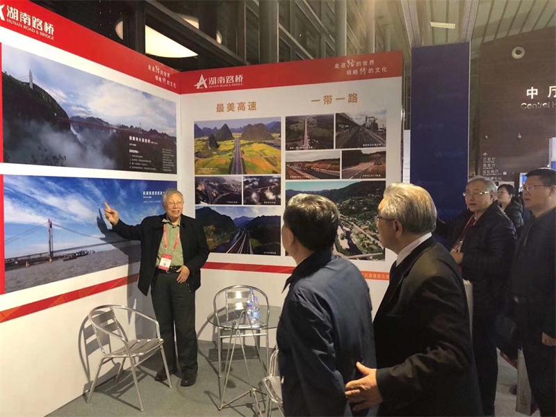 湖南路橋展臺(tái)通過(guò)現(xiàn)場(chǎng)豐富的視頻介紹,背景墻的圖片展示,精彩的文字說(shuō)明,集中向參會(huì)人員展示了集團(tuán)光輝的發(fā)展歷程,形象地介紹了集團(tuán)的宏偉發(fā)展規(guī)劃以及最新成果,可以稱(chēng)得上是會(huì)議的熱門(mén)展廳。展廳吸引了中國(guó)工程院院士王景全等眾多專(zhuān)家和領(lǐng)導(dǎo)駐足,王院士還興致勃勃地向原交通部部領(lǐng)導(dǎo)李盛霖、胡希捷等熱情介紹了矮寨大橋和洞庭湖大橋兩大公司精品工程。