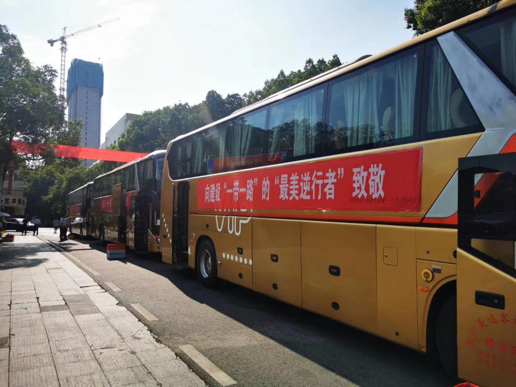 出征儀式上,湖南交水建集團(tuán)領(lǐng)導(dǎo)向赴格團(tuán)組領(lǐng)隊(duì)授 " 赴格魯吉亞復(fù)工復(fù)產(chǎn)先鋒隊(duì) " 隊(duì)旗,省國(guó)資委、湖南交水建集團(tuán)和湖南路橋集團(tuán)相關(guān)領(lǐng)導(dǎo)對(duì)團(tuán)組成員進(jìn)行慰問,贈(zèng)送防疫愛心禮包,歡送這群為國(guó)際工程履約、奔赴海外的 " 最美逆行者 "。