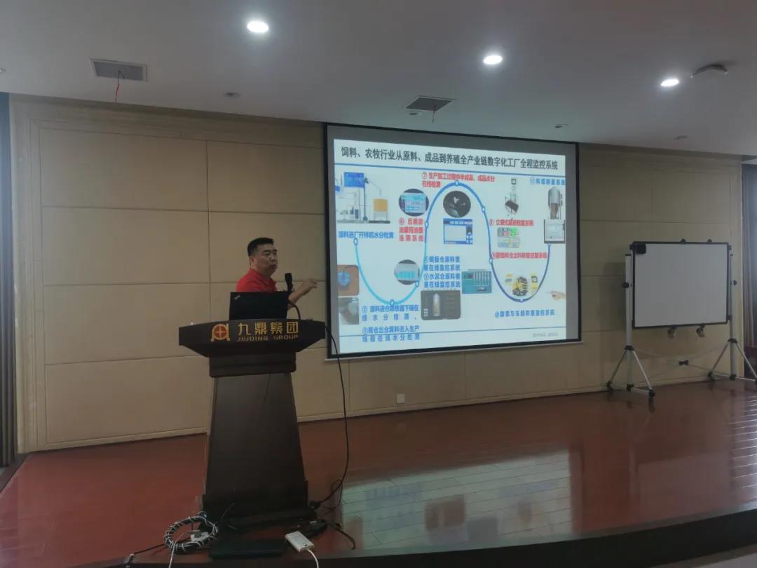 湖南九鼎農(nóng)牧基地廠長謝爭光在會(huì)場進(jìn)行新工藝/新技術(shù)/新設(shè)備分享與答疑