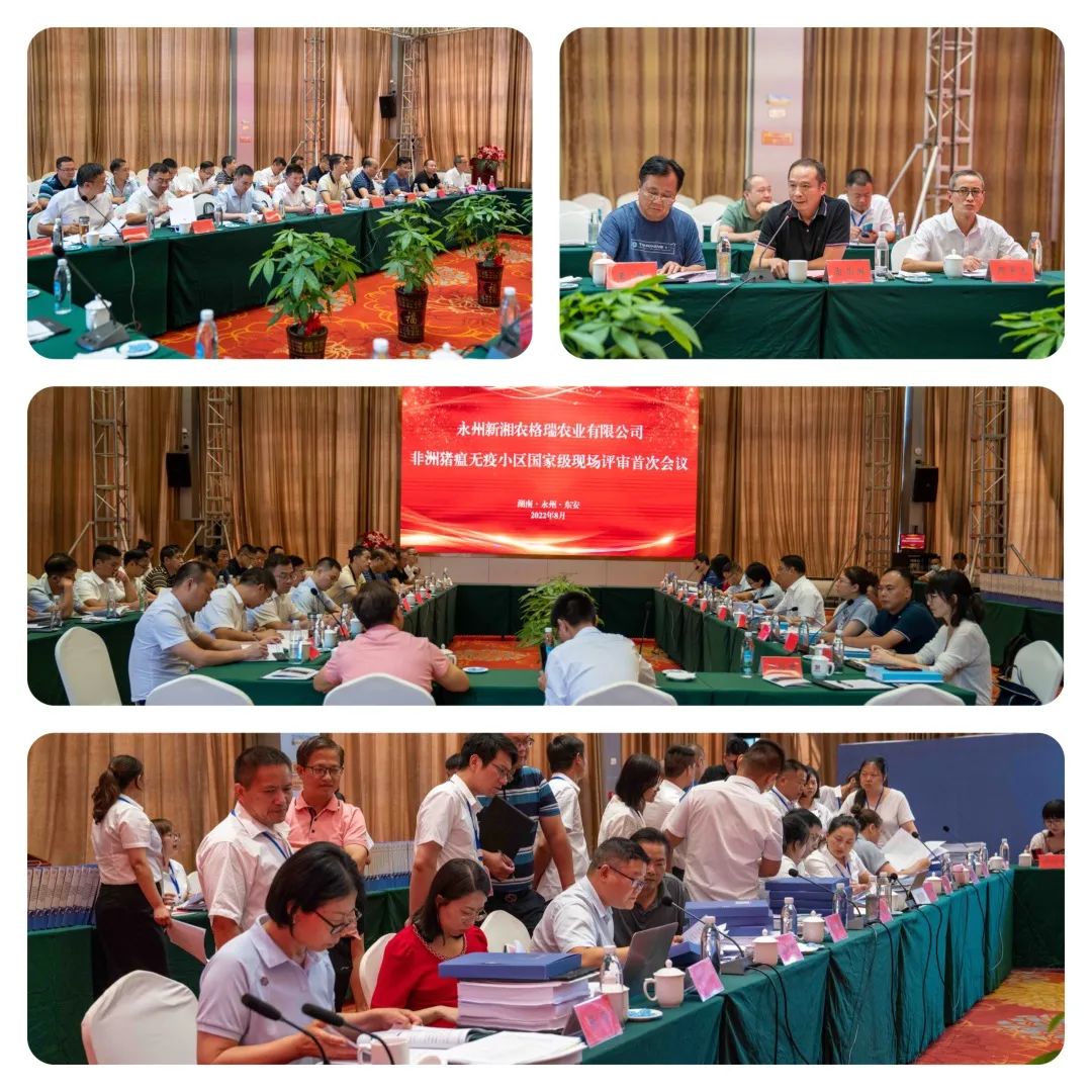 國家評估專家組一行先后前往永州新湘農(nóng)格瑞農(nóng)業(yè)有限公司的獸醫(yī)實驗室、車輛洗消中心、原種豬場、轉(zhuǎn)運中心、人員物資隔離中心及縣級獸醫(yī)實驗室、動物衛(wèi)生監(jiān)督機構(gòu)等場所等地,通過聽取匯報、座談交流、查閱檔案資料、現(xiàn)場核查和視頻連線等方式進行現(xiàn)場查驗,并在縣城召開了評審會。并在現(xiàn)場評審末次會議上,最終專家組一致同意給予永州新湘農(nóng)格瑞農(nóng)業(yè)有限公司非洲豬瘟無疫小區(qū)“建議通過”的現(xiàn)場評審結(jié)果。